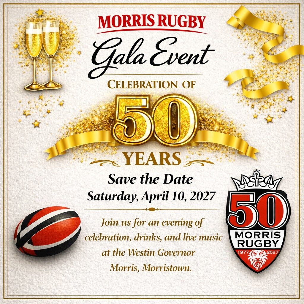 Celebrate 50 Years of Morris Rugby! 🏉 Join us on Saturday, April 10, 2027, at the Westin Governor Morris Hotel in Morristown as we gather for an evening of great company, delicious food, and celebration as we honor five decades of Morris Rugby. Check back for more details.